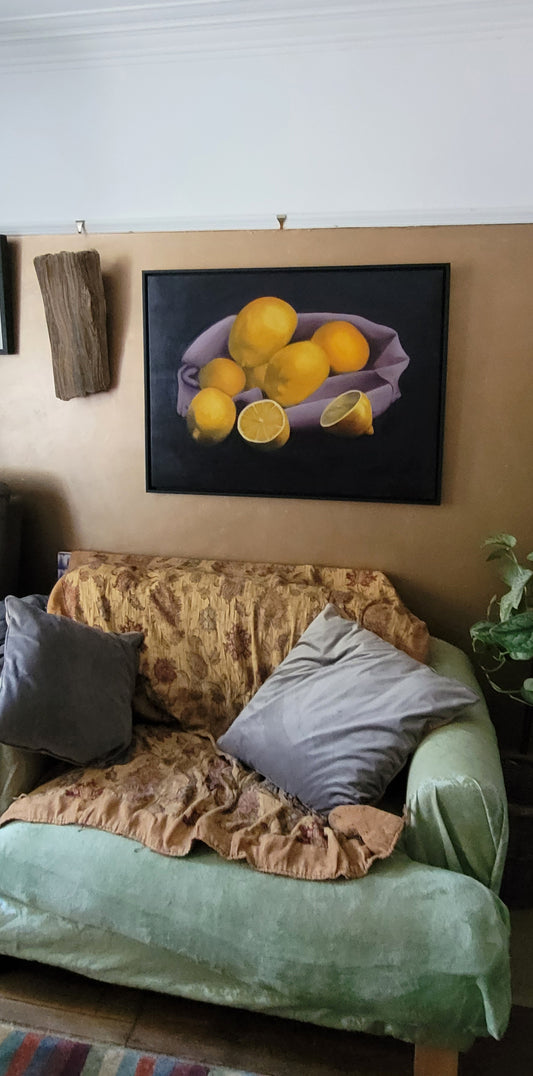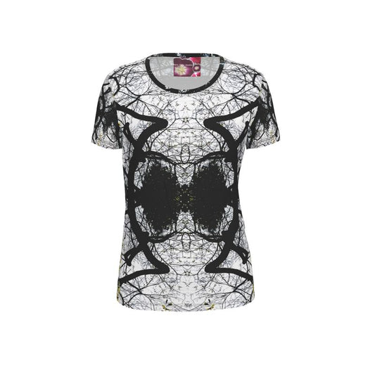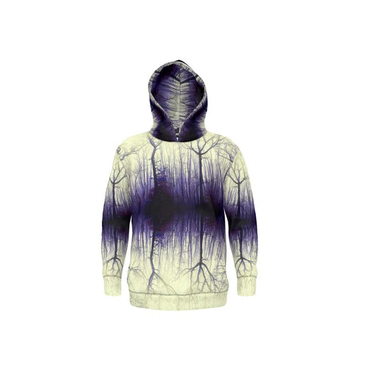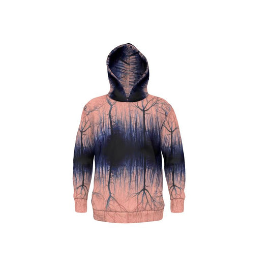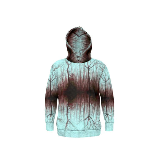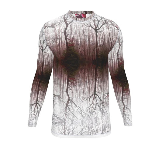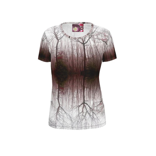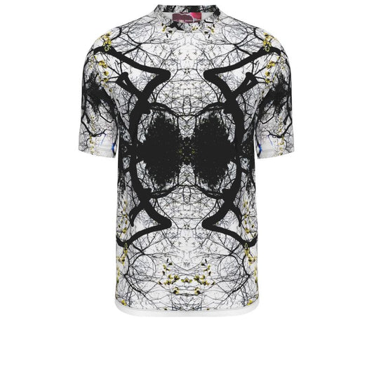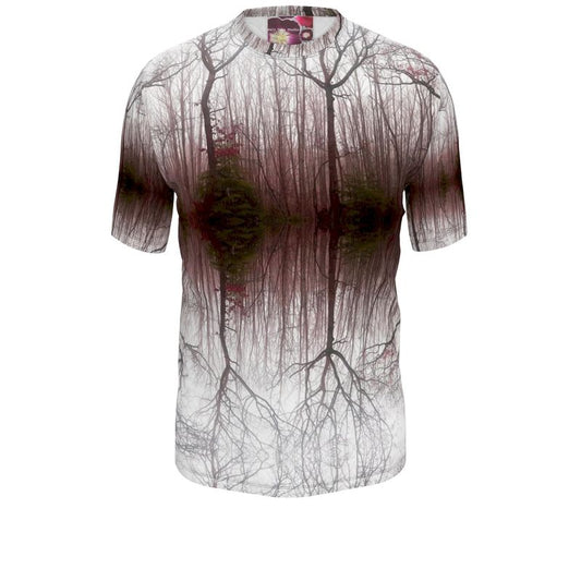 Metal storage tin with original tree artwork lid. Designer art tin.