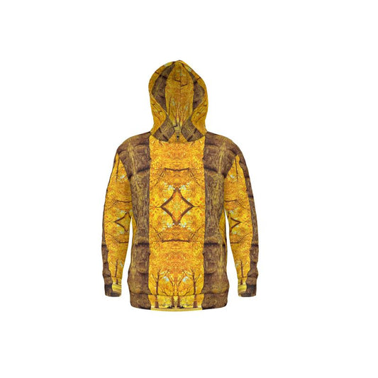 Metal storage tin with original tree artwork lid. Designer art tin.