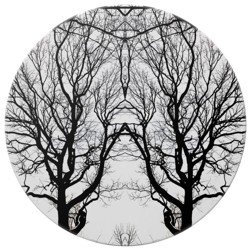 Scatola rotonda con design unico ad albero realizzato da un artista.